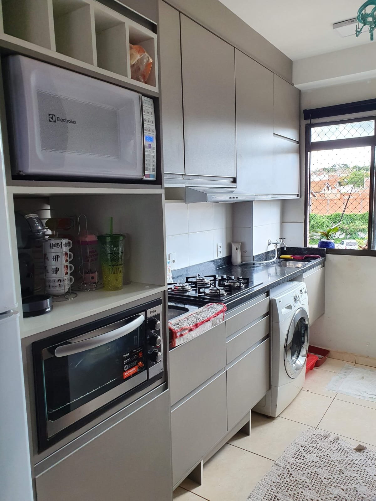 Sendo 2 dormitórios com armários – Cozinha rica em armários e lavanderia – Banheiro com box – 1 vaga na garagem