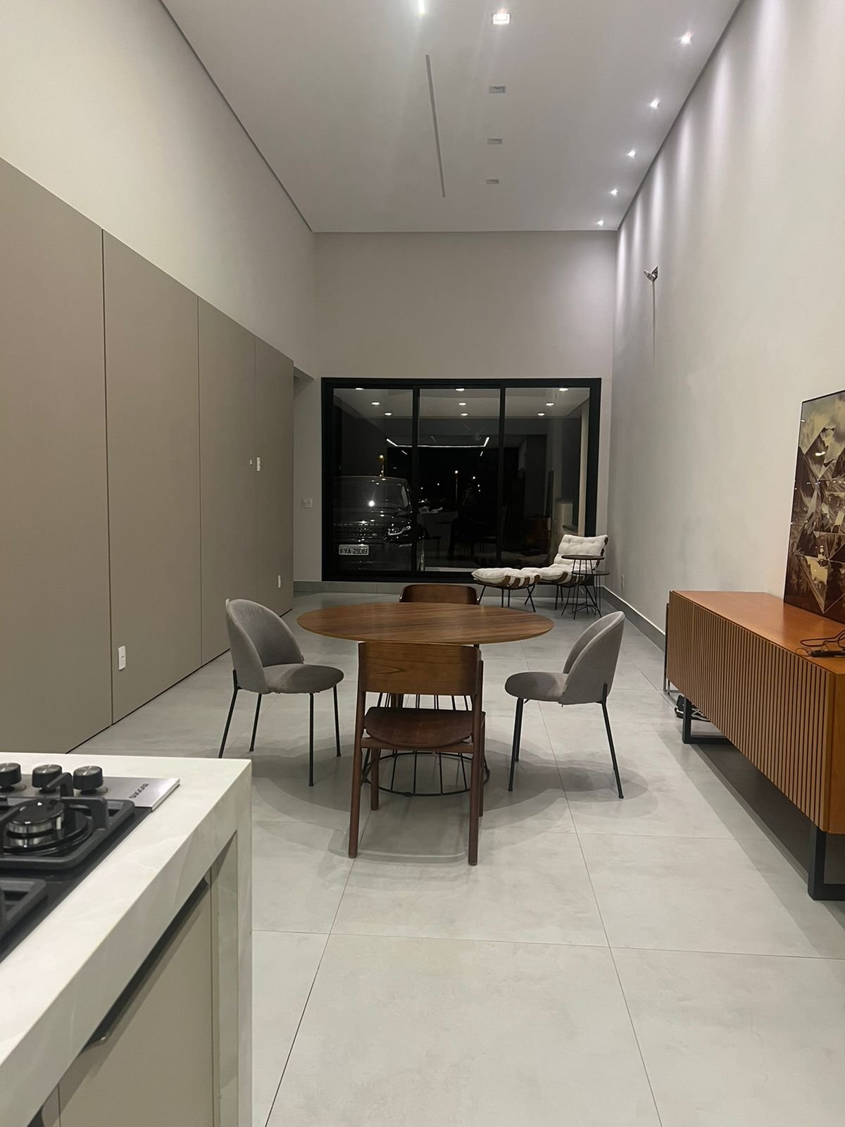 – Sala de estar, sala de jantar e cozinha gourmet integrada;