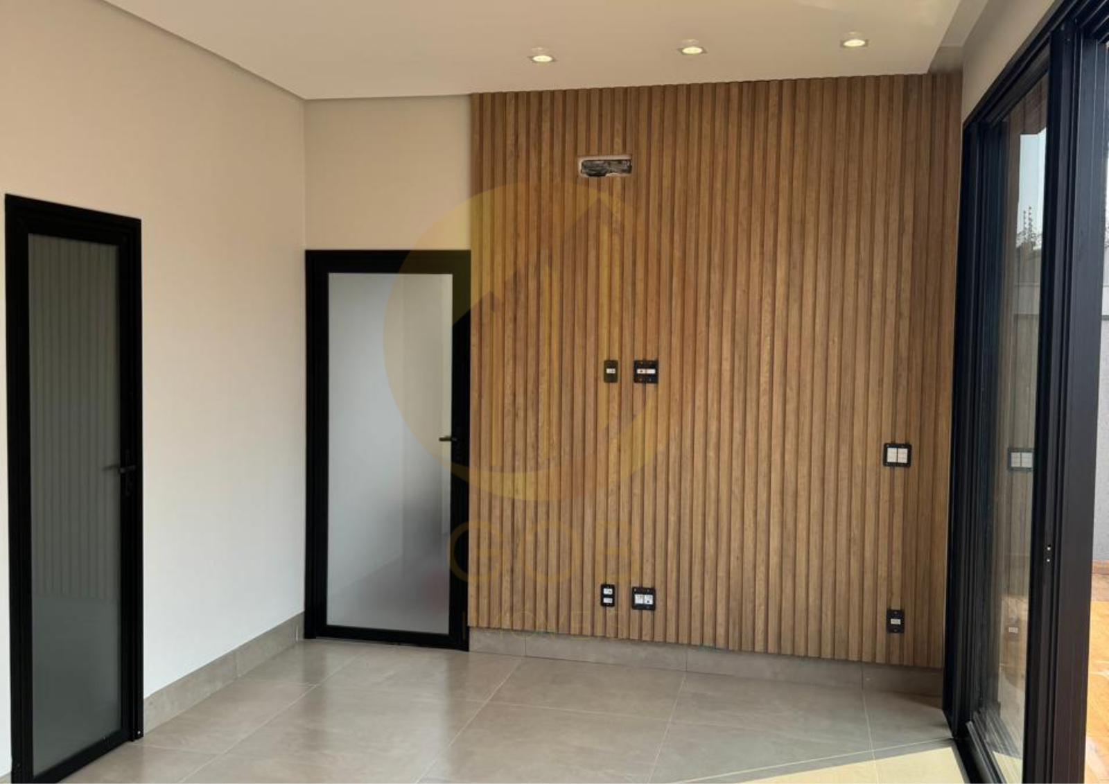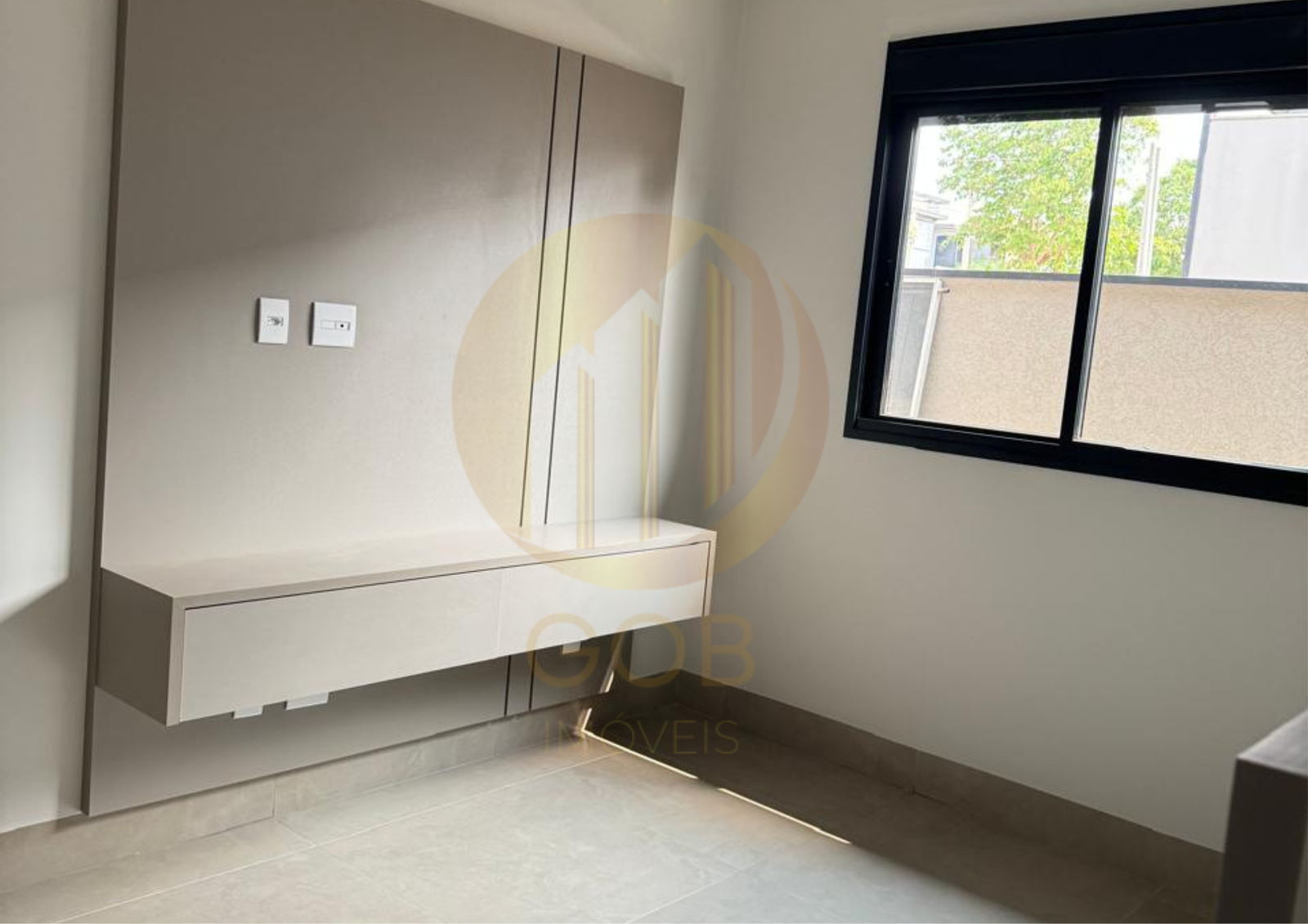 •Sala de TV: Com painel sob medida.