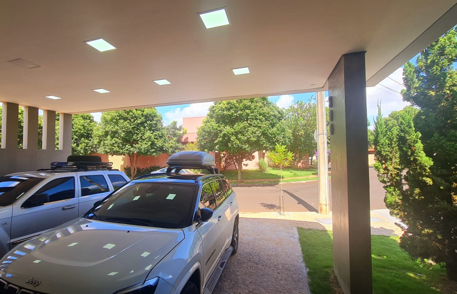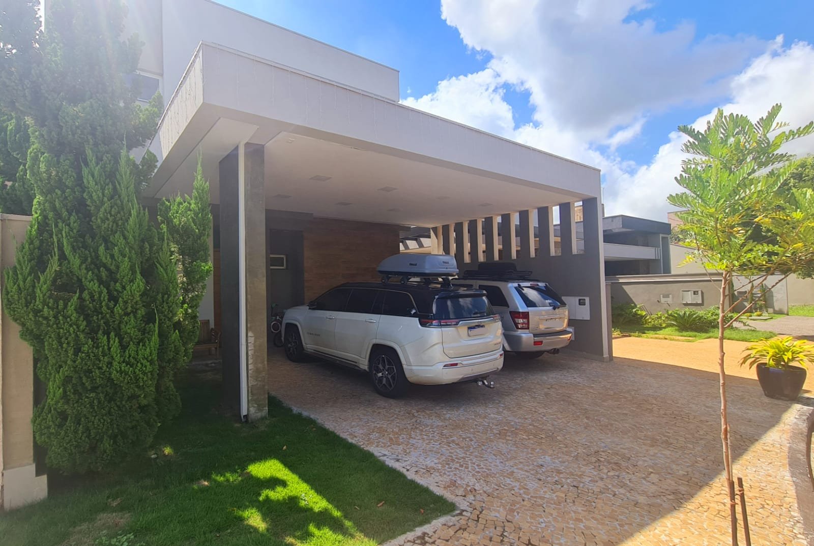Garagem para até 03 carros lado a lado.